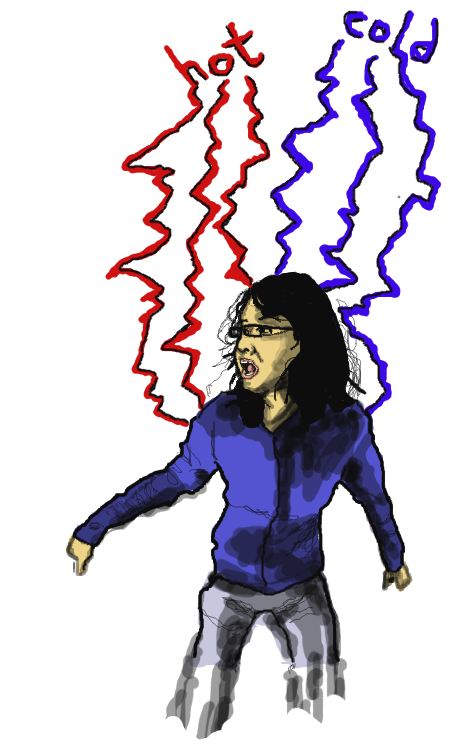 God, why is it so fucking hot? And, so cold? This is not the way biology is supposed to work. If it were alive, a genetically-mutated ancestor of mine would be laughing vengefully right now. Or, well, probably coughing wheezily, and cursing whatever gods it believed in, if it had the mental capacity to believe in things, for being alive for so fucking long.