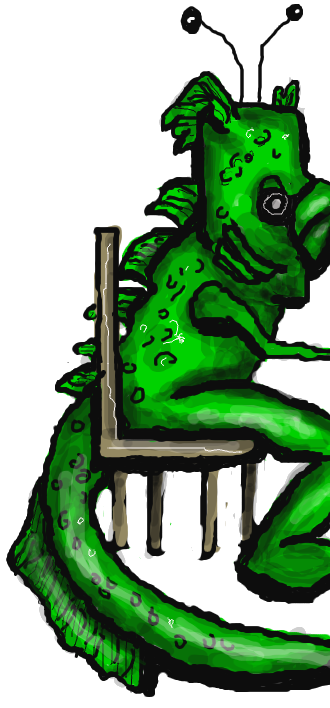 My foot itches, so I look below the table, to find a tail (Greenfin's I hope) laying next to it. Like his antennae, it twitches arbitrarily... or, maybe to the rotation of some abandoned moon in the ffggkk galaxy.