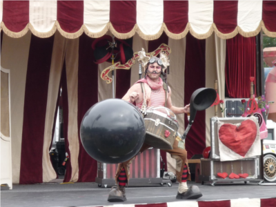 Someone pushes me from behind, and I start walking forward, and the shouting becomes increasingly loud, and I'm looking at Sen, and Sen's looking at me, and she smiles, a smile that reaches both ends of her rhino costume, and I turn and I open my mouth and sing: